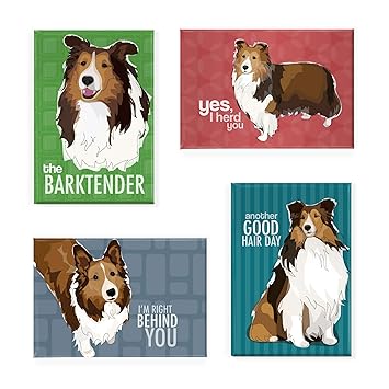 Sheltie Gifts Set Of 4 Refrigerator Magnets With Funny