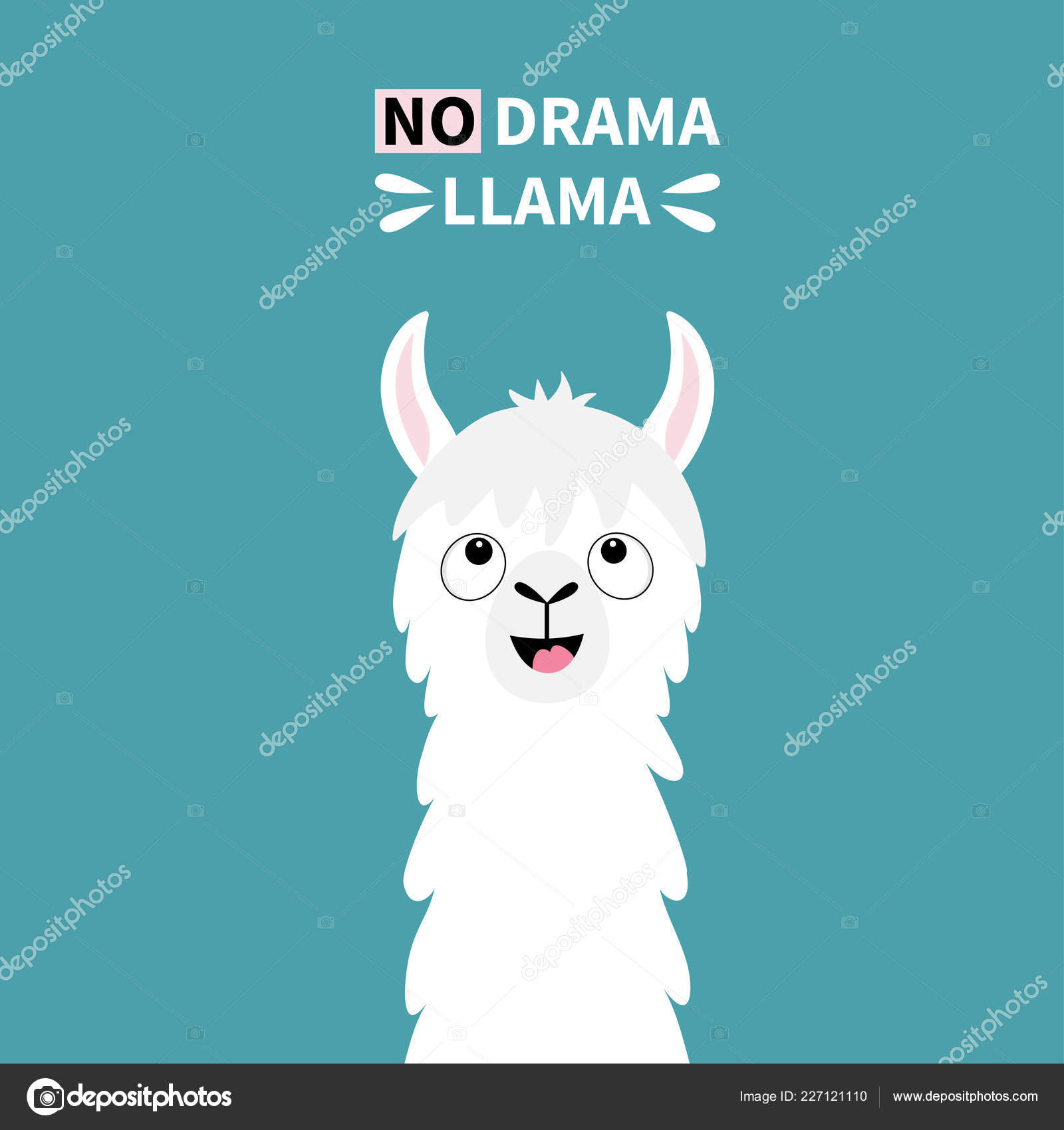 Llama Alpaca Turning Head Face Tongue No Drama Cute Cartoon