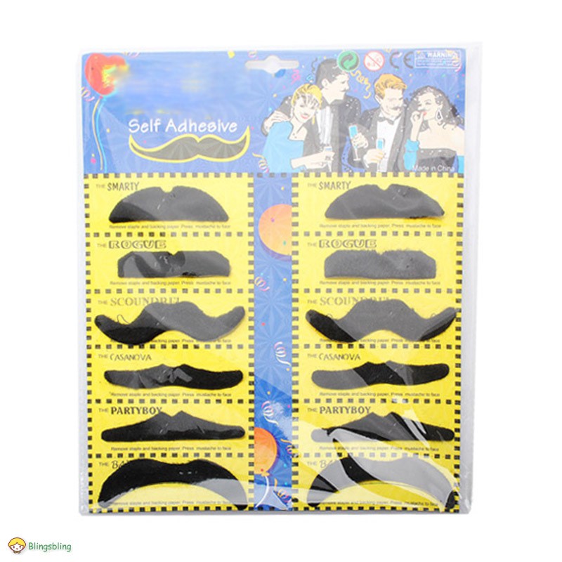 12 Pcs Set Funny Fake Moustaches Mustache Beard Goatee Party Set Self Adhesive