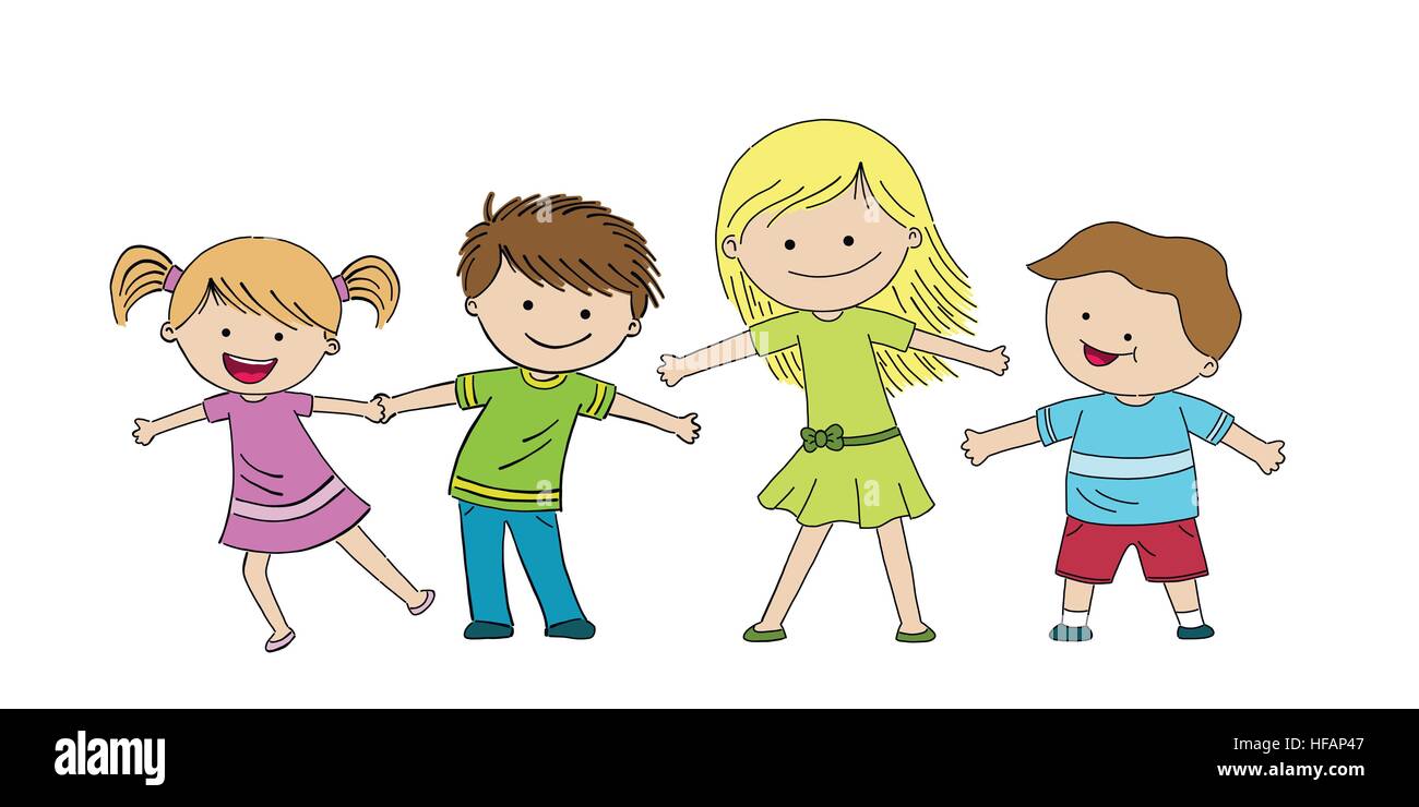 Four Funny Kids Hand Draw Sketch Stock Vector Art