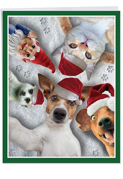 Holiday Animal Selfie Christmas Card 8 5 X 11 Inch Humorous Merry Christmas Appreciation Card With Envelope Extra Large Cat Dog Funny Pet Card