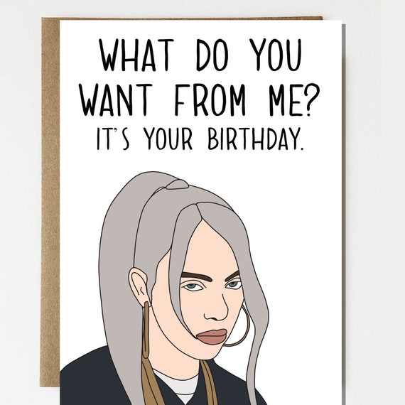 Funny Billie Eilish Inspired Happy Birthday Birthday Card Happy Birthday Funny Card Greeting Card