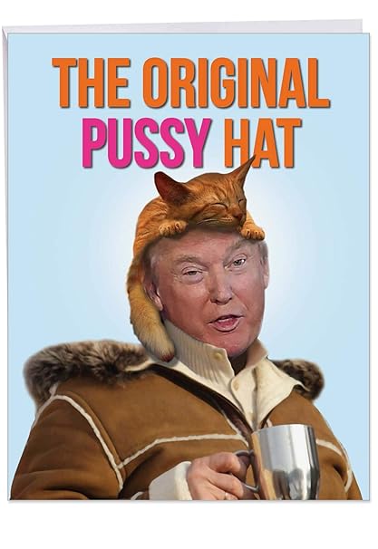 Hysterical Donald Trump Birthday Card With Envelope 8 5 X 11 Inch Big Original Pussy Hat Bday Greeting Card Funny President Trump Wishing A Happy