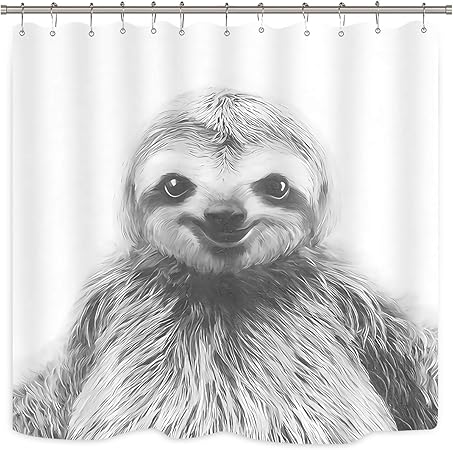 Wowzone Black And White Sloth Shower Curtain Portrait Set Funny Animal Art Print Home Bathroom Decor Fabric Panel Polyester 72x72 Inch With 12 Pack