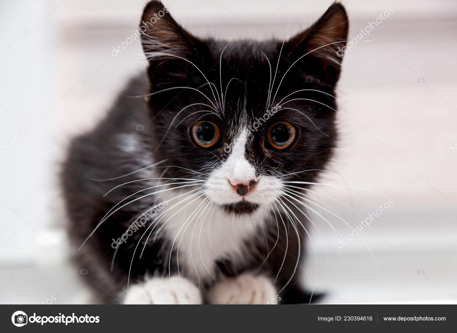 Black White Kitten Funny Face Big White Mustache Eyebrows