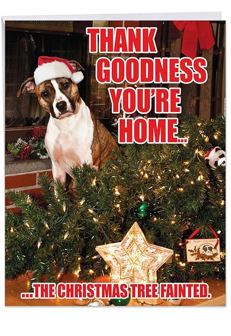 Christmas Tree Fainted Funny Dog Merry Christmas Card With Envelope Large 8 5 X 11 Inch Adorable Puppy In Santa Hat Animal Happy Holidays Card