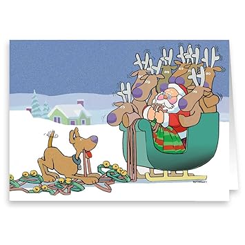 Cute Dog Scares Reindeer Funny Christmas Card 18 Boxed Cards And Envelopes Standard
