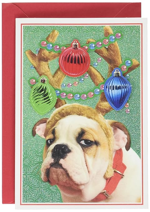 Hallmark Shoebox Funny Christmas Card Bulldog In Reindeer Antlers