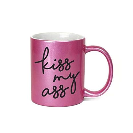 Kiss My Ass Inappropriate 11 Oz Metallic Pink Novelty Funny Coffee Mug