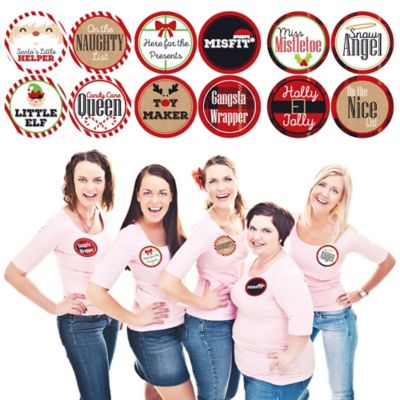 Jolly Santa Claus Christmas Party Funny Name Tags Party Badges Sticker Set Of 12 Naughty Nice