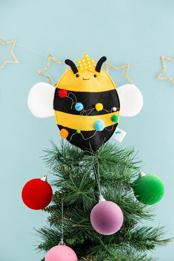 Bee Christmas Tree Topper Bee Decoration Funny Christmas Bumble Bee Felt Bee Tree Topper Star Tree Topper Colourful Christmas Kitsch