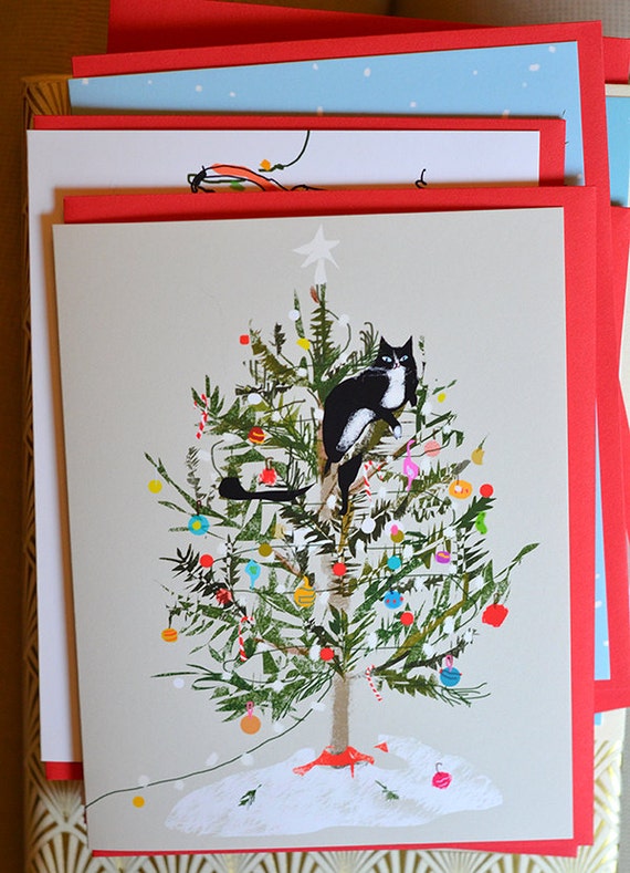 Funny Christmas Card Christmas Tree Cat Cat Christmas Card