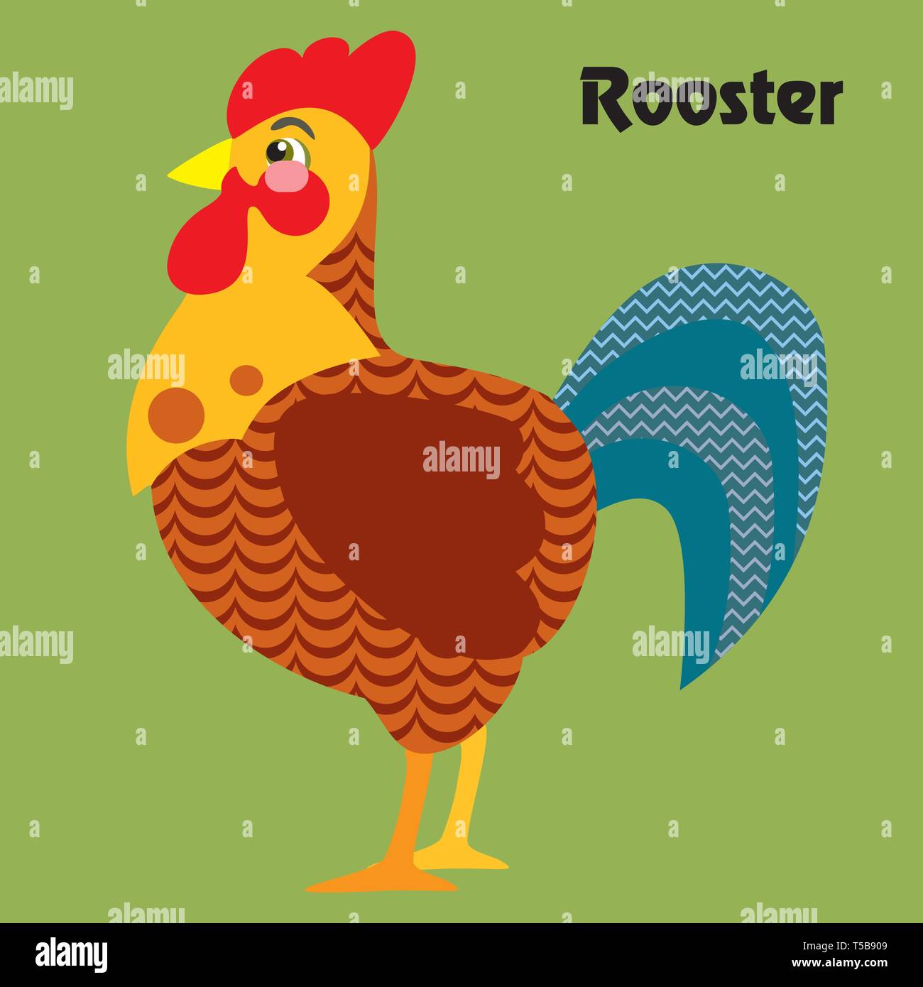 Colorful Decorative Outline Funny Colorful Rooster Standing