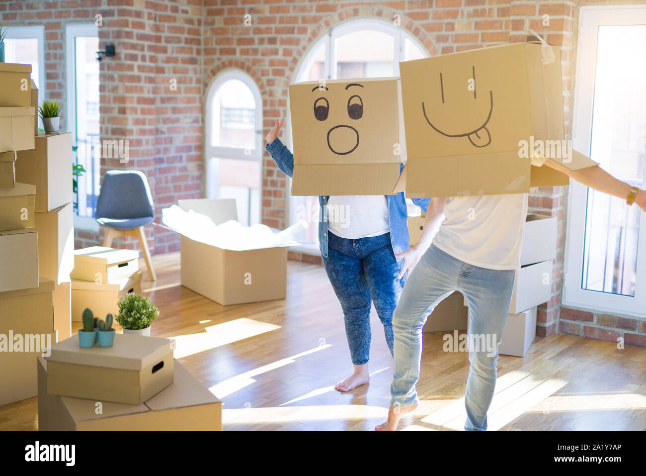 Crazy Couple Wearing Cardboard Boxes With Funny Emoji Faces