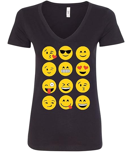 Emoji Faces Funny V Neck T Shirt Cute Emoticon Texting Positive Vibes