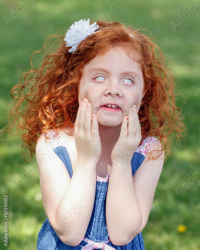 Portrait Of Cute Adorable Little Red Haired Caucasian Girl
